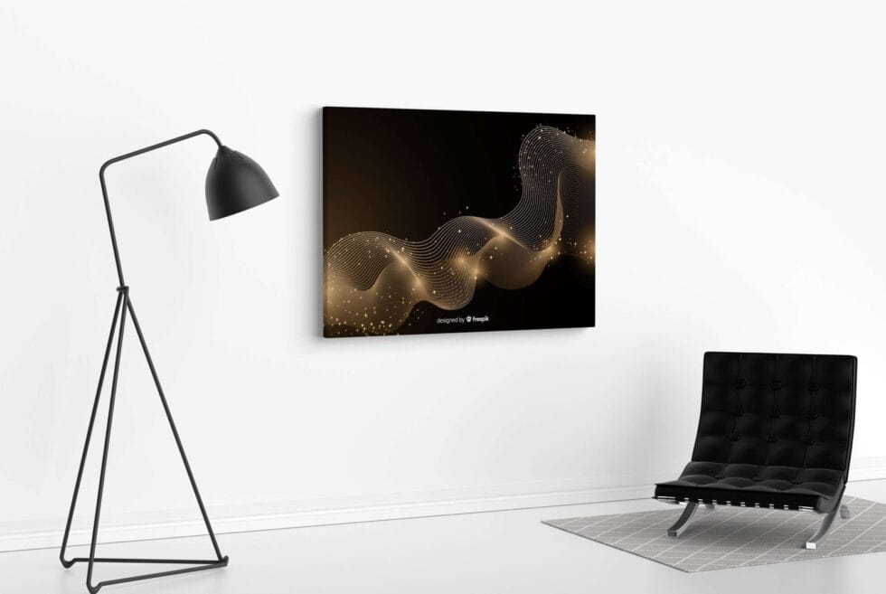 A sophisticated golden round framed painting perfect for both modern and classic interiors.