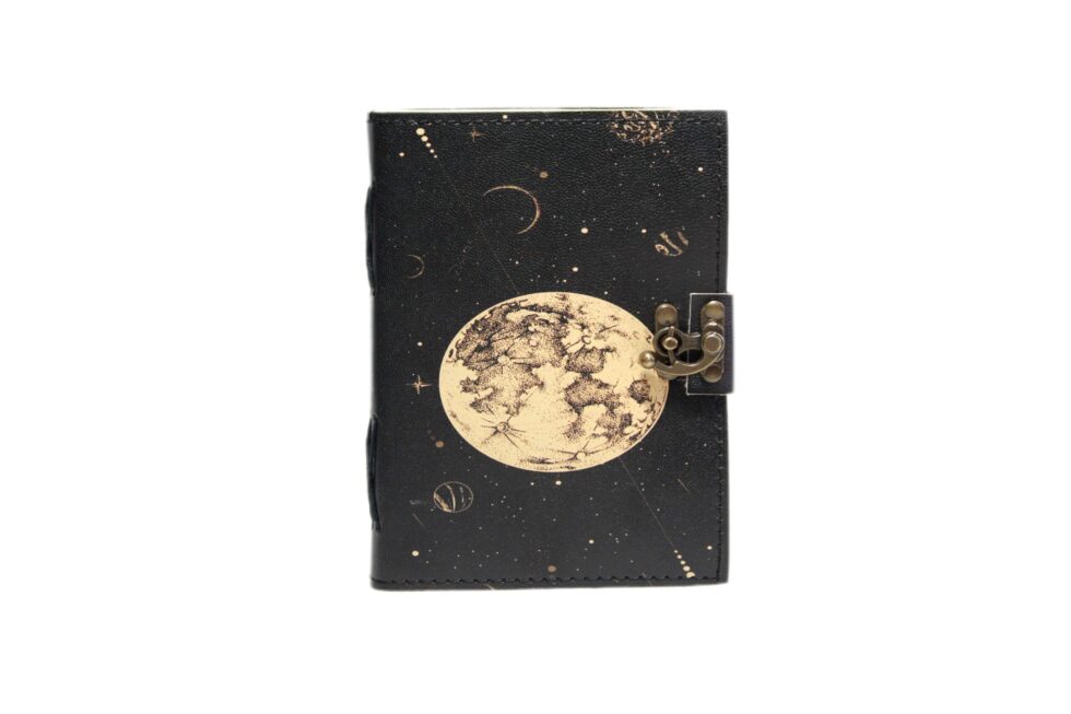 Celestial Moon Phase Black Leather Journal